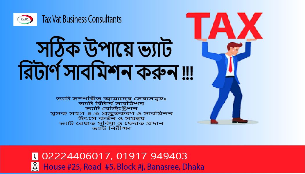 Tax VAT Business Consultants (TVBC) means gaining expert support that simplifies your tax and VAT responsibilities. We ensure full compliance with NBR regulations, help you legally reduce tax liability, and maximize input VAT credits to improve cash flow. Our team handles everything — from registration and monthly return filing to audit preparation and VAT software setup — so you can focus on growing your business with confidence. With TVBC, you get reliable advice, reduced risk, and long-term value.